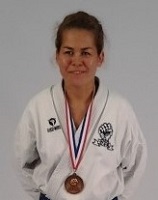 Jackie har nått pallplats i många tävlingar sedan 2011, vid Gojukai EM i England -15 tog hon en het brons medalj.